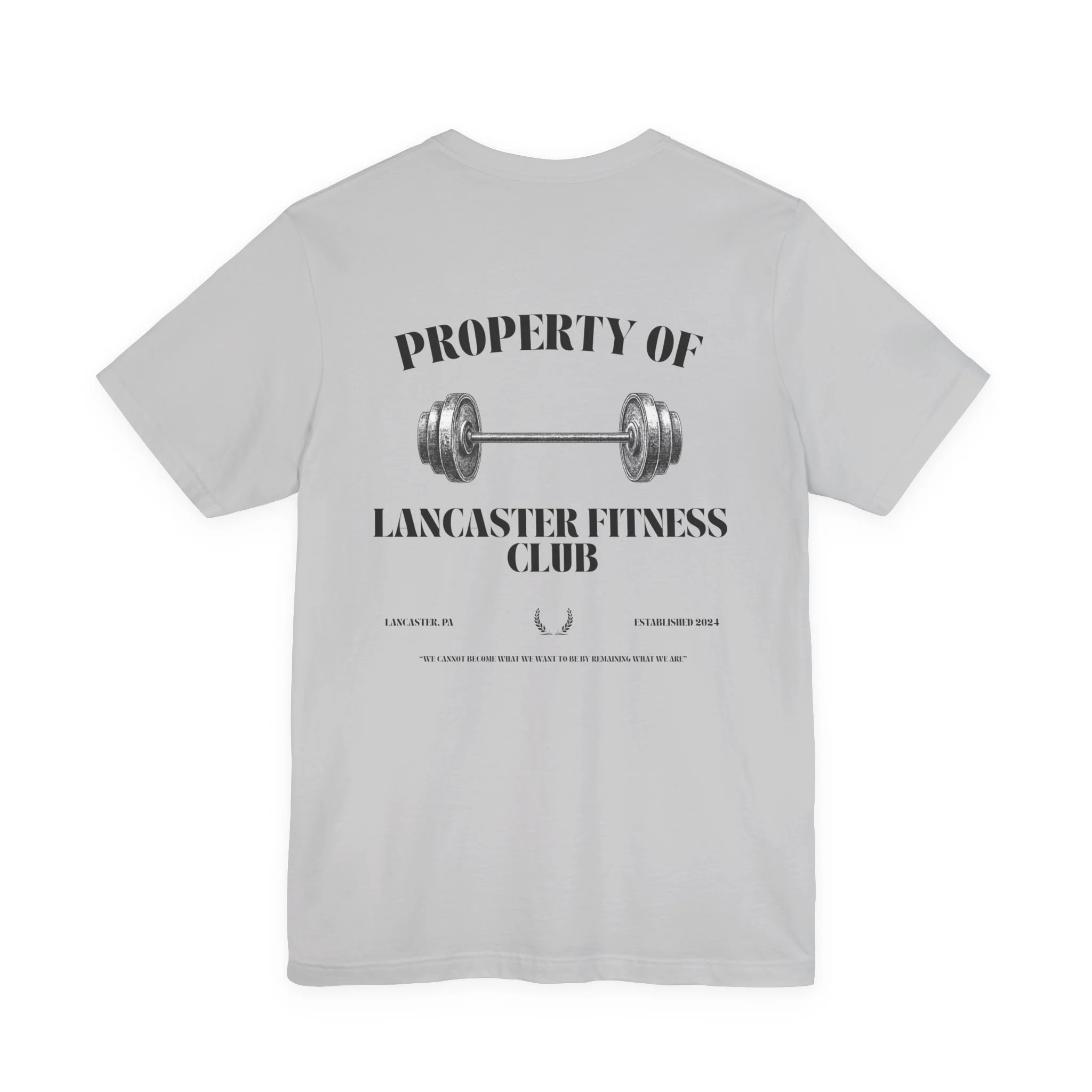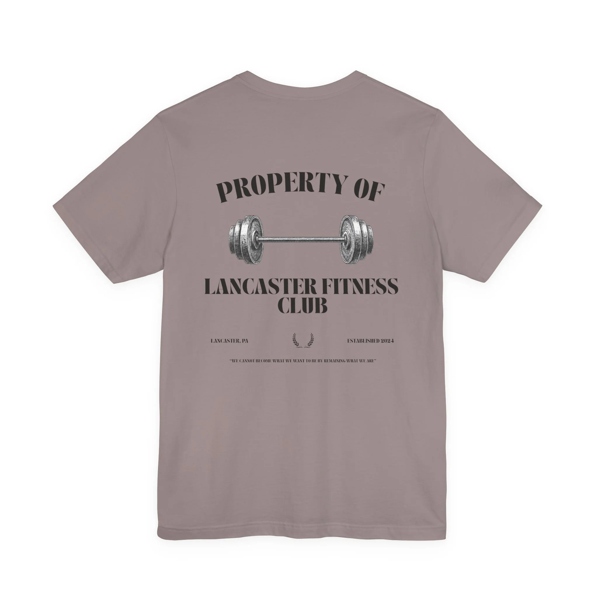 - Printed graphics: bold back barbell design, small chest print; DTF/DTG printing options